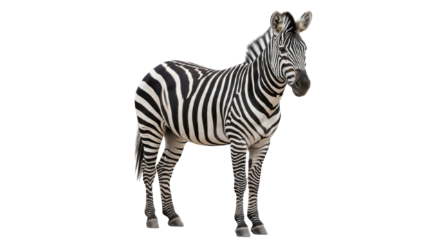 Full-length studio portrait of an African Zebra standing with distinctive black and white stripes. isolated PNG with Transparent Background
