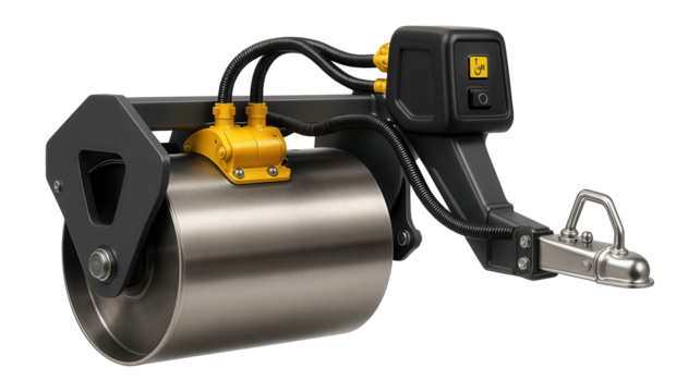 Towable vibratory roller with a detachable drum for easy maintenance and servicing in rental equipment fleets