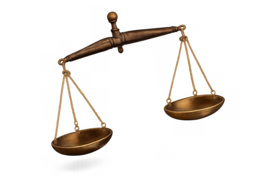 Bronze scales of justice symbolizing law, balance, measuring equality, legal system, and court judgment