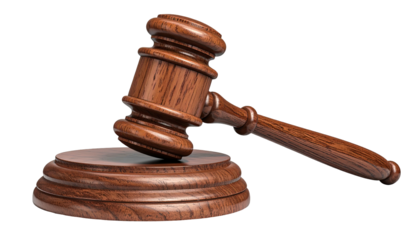 Gavel representing judicial authority, legal decision making, justice, and court verdict on transparent background