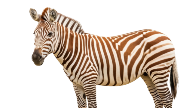 Isolated reddish-brown zebra standing in profile, wildlife of the African savanna, mammal