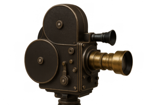 Vintage movie camera capturing film history, classic cinema equipment symbolizing retro entertainment and production era