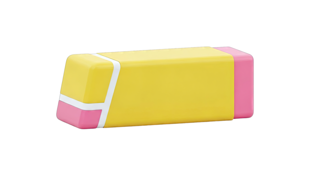 Ink and pencil rubber eraser isolated on a transparent background, PNG. High resolution.