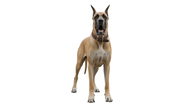 Isolated Great Dane dog standing alert with ears erect, facing forward in neutral posture