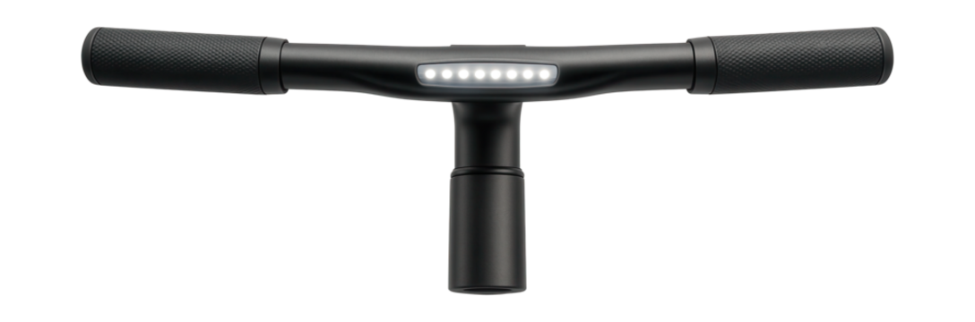 Flat handlebar featuring built-in LED lights and an ergonomic grip design.