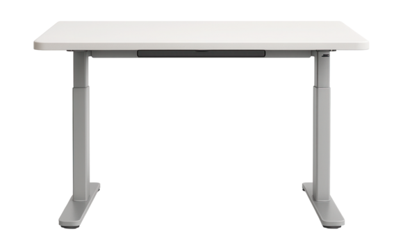 A height-adjustable minimalist standing desk for ergonomic use in shared workspaces.
