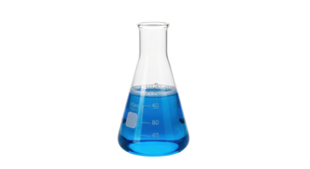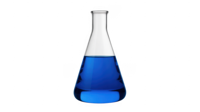 Erlenmeyer Flask Containing Blue Liquid on Transparent Background