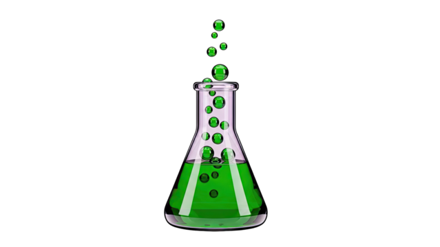 Erlenmeyer flask holding a vibrant green chemical liquid, representing science, research, medical innovation, and education