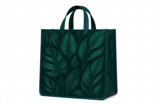 Tropical leaf-patterned green tote bag, carrying sustainable style for urban shoppers and daily errands