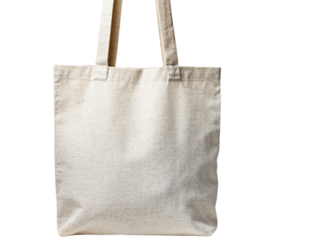 Plain beige canvas tote bag with simple handles, lightweight and versatile for everyday use. isolated on transparent background, png