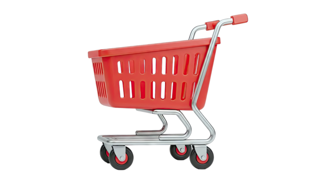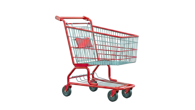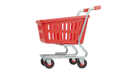 Red Shopping Cart with Gray Basket