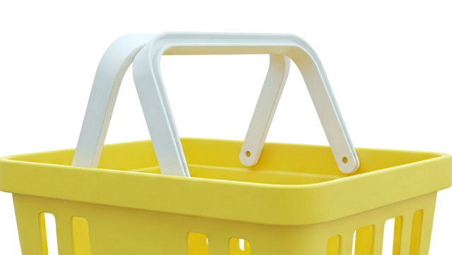 Yellow Plastic Shopping Basket with White Handles