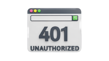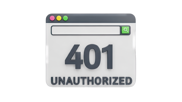 3D Render of a Browser Window Showing 401 Unauthorized Error