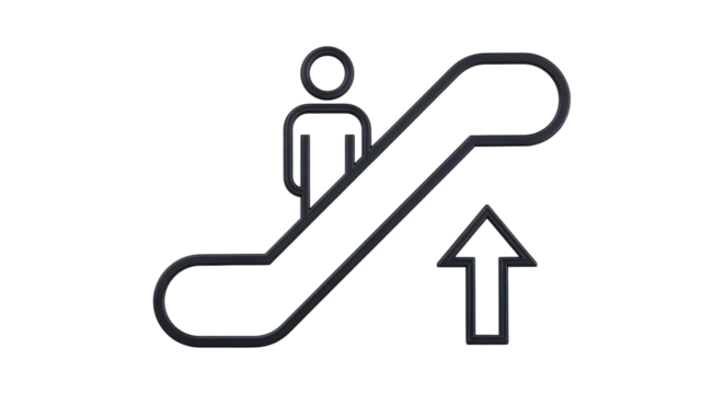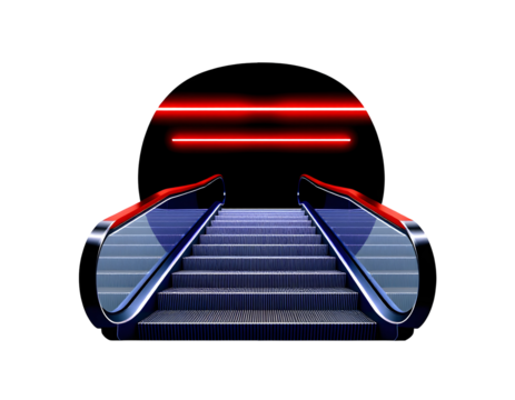 Escalator isolated on white background, highlighting its smooth lines and modern look. Ideal for public transport illustration or interior design.