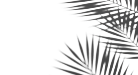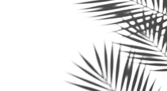Soft, diffused palm frond shadows cast on a pristine bright white surface, forming an organic pattern with ample left copy space, high-key flat lay, tropical simplicity and modern summer aesthetic
