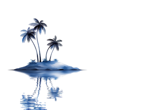 Serene tropical island oasis with tranquil water reflection, evoking peaceful vacation dreams and exotic escapism for your projects.