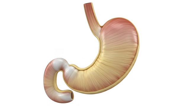 Detailed anatomical illustration of the human stomach and esophagus isolated on transparent background
