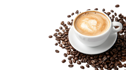 Cup of Coffee with Heart Latte Art Isolated PNG. AI Generated.
