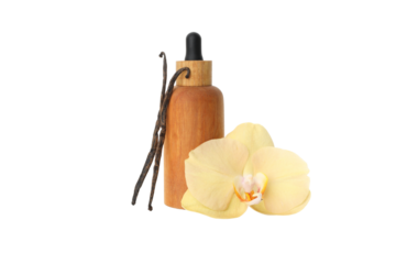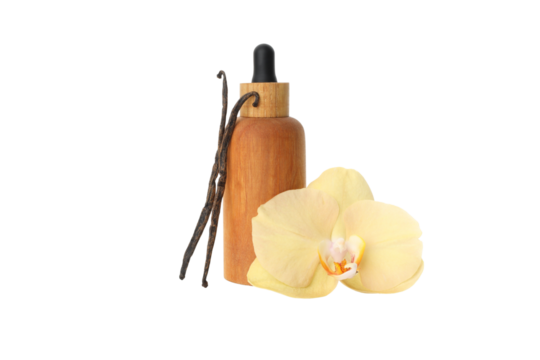 Aromatic Potion: A beautifully lit studio shot of a clear glass bottle elegantly filled with a fragrant, golden liquid, showcasing the allure of natural fragrance.