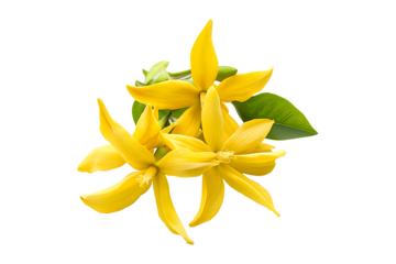 Neroli essential oil in the bottle and orange tree fragrant flowers, leaves and buds isolated transparent png.