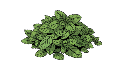 Isolated Background of Fresh Green Mint Leaves on Transparent Backdrop