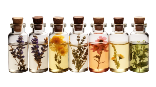 Pure organic essential oils isolated on transparent background