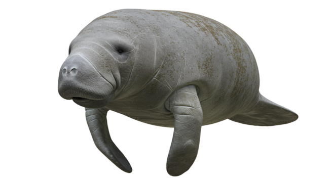 Collection of Manatee exploring Moves slowly through its environment, looking for food or shelter. full length isolate on transparent background