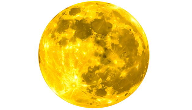 Bright yellow celestial orb, riddled with craters and glows against a black backdrop