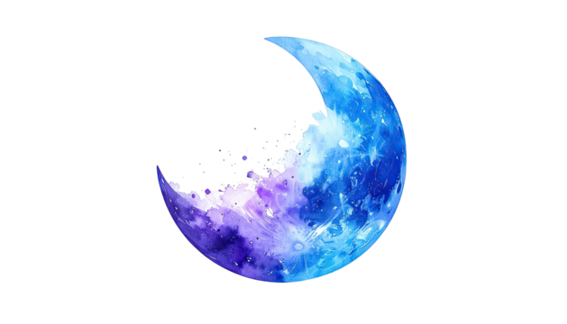 Blue full moon illustration showcasing craters and texture, isolated on transparent background for space and night sky designs