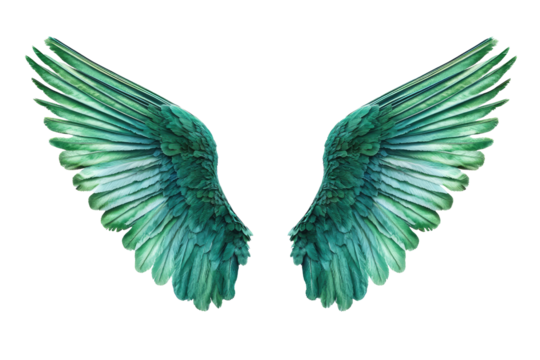 Emerald green wings with intricate feather design, showcasing a gradient from dark to light green. This vibrant, detailed artwork suggests growth, nature, and tranquility.