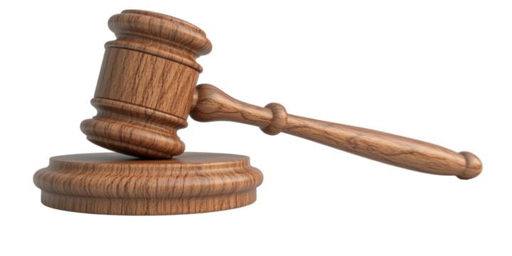 Isolated PNG of a Wooden Gavel Symbolizing Law and Justice Court