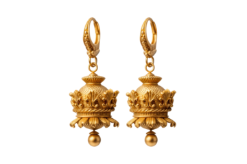 A stack of intricately designed gold bangles, isolated on a transparent background