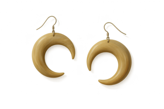Tribal style crescent bone earrings isolated on transparent background, jewelry