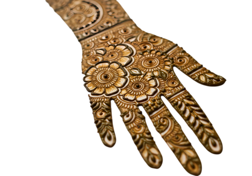 Close up to A woman's hand opening her palm to show something, on a transparent white background.