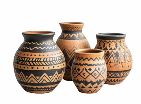 Collection of handmade pottery vases with ethnic designs offers rustic charm and artisan beauty for home decor
