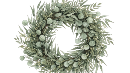 Elegant floral wreath of white tulips and eucalyptus leaves, perfect for spring or wedding decor. background removed