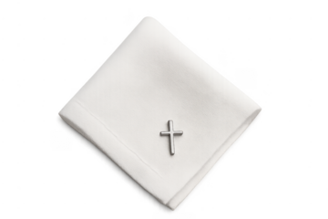 Hands holding eucharist host with cross on transparent background