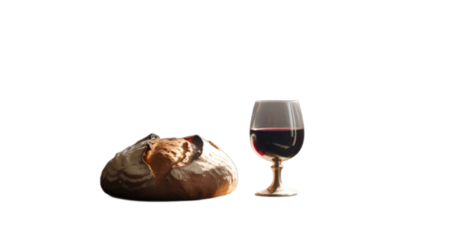 A symbolic representation of bread and wine, conveying a sense of reverence and tradition.