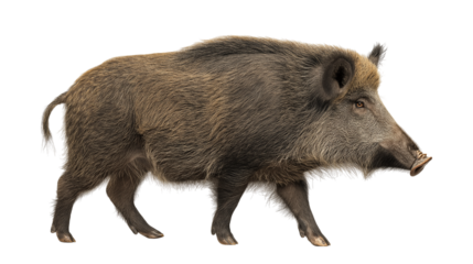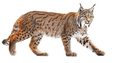 Full body profile of a eurasian lynx walking, isolated on transparent background