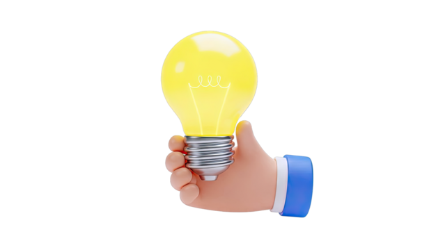 Light bulb illustration shedding light on new ideas, creativity, innovation, and problem solving, transparent background