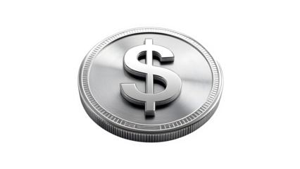 Stylish silver euro coin on transparent background