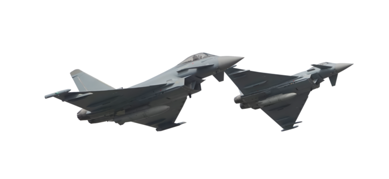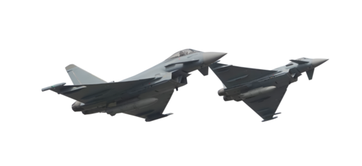 eurofighter typhoon jet fighters in flight on transparent background
