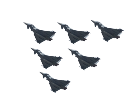 eurofighter typhoon formation in flight on transparent background