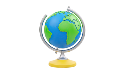 Classic Blue and Green Earth Globe on Stand, isolated on a transparent background.