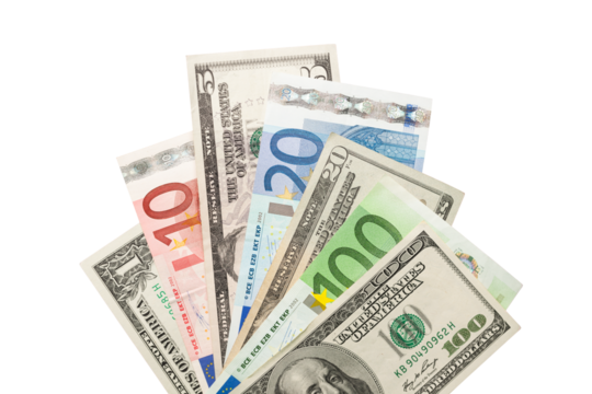 Euro fifty 50 and 100 one hundred money bills isolated transparent background photo PNG file