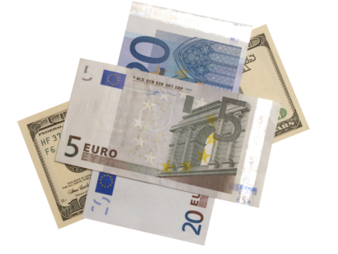 Top border of various Euro currencies notes mixed isolated transparent background photo PNG file