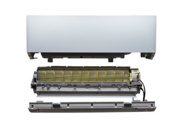 White disassembled air conditioner isolated on transparent background