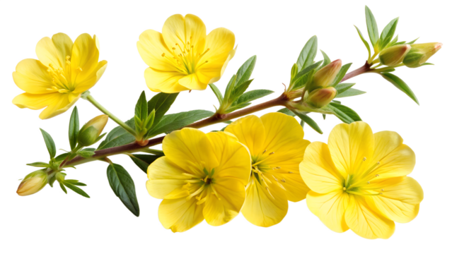 Charming yellow evening primrose isolated on transparent background, displaying its delicate petals and intricate details, evoking a sense of natural beauty and tranquility