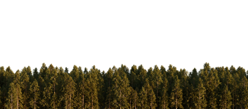 Glass sphere reflecting clear lake with forest and sky at sunset, isolated on transparent background