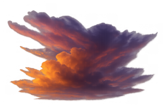 Colorful storm cloud forming at sunset, showing orange and purple hues with a transparent background